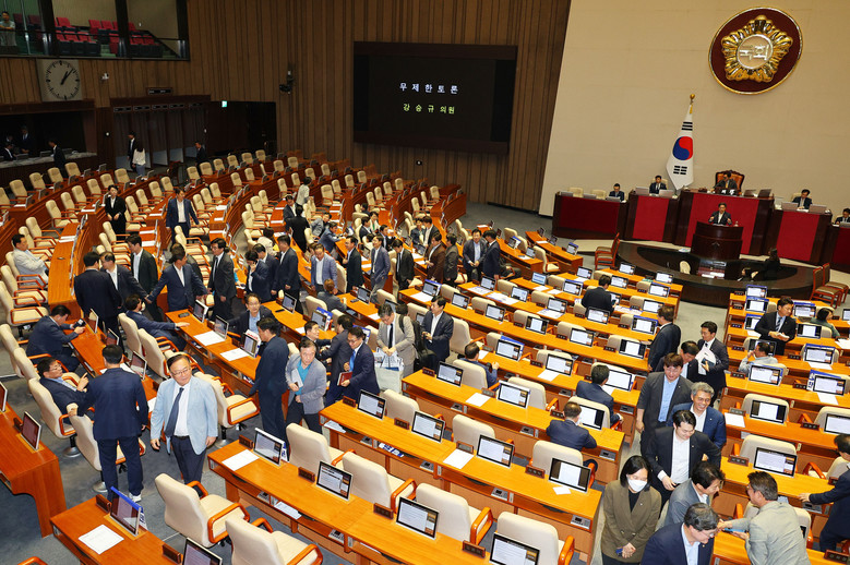 '방문진법' 무제한토론 시작...퇴장하는 야당 의원들 (연합뉴스)