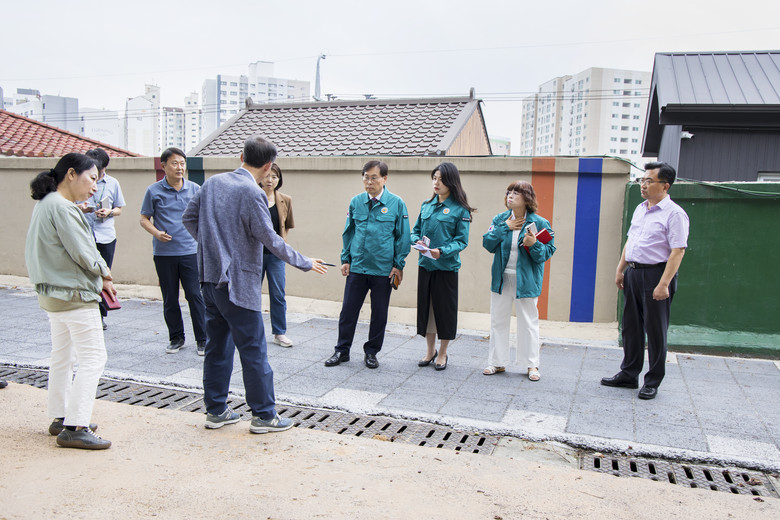이종호 의장을 비롯한 중구의회 의원들은 원도심 율목동 상습 침수 구역을 돌아보며 하수관로 정비 등 매년 반복되는 침수에 대한 적극적인 대책 마련을 촉구하였으며, 지속적인 순찰과 피해예방 조치 강화의 필요성을 재차 강조했다.
