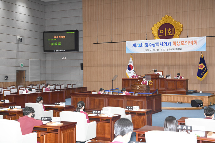 광주광역시의회는 학생 모의의회를 2005년부터 광주광역시교육청에서 학교를 추천받아 진행 중으로 지금까지 총 73회 8,000여명이 체험했고 11월 중에는 체험 우수 수기에 대해 시상할 예정이다.