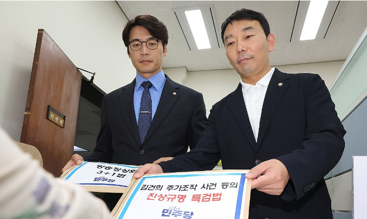 [세계타임즈 = 심귀영 기자] 더불어민주당은 김건희 특검법과 방송 3법 등 21대 국회에서 윤석열 대통령의 거부권 행사로 폐기된 법안과 가계 부채 지원법 등을 22대 국회에서 중점적으로 입법 추진하기로 했다.민주당은 국회에서 연 22대 첫 정책의원 총회에서 총 22개 법안과 1개 결의안을 당론으로 채택했다.김건희 주가조작 사건 등의 진상규명 특검법은 윤석열 대통령 부인 김건희 여사의 도이치모터스 주가 조작 연루, 가방 수수 등 의혹의 진상 규명을 위한 특별검사를 도입하는 내용이다.김 여사 주가조작 의혹의 경우 21대 국회에서 야당 주도로 특검법이 통과됐으나 올해 1월 윤 대통령의 재의요구(거부권)로 폐기된 바 있다.21대국회에서 윤 대통령이 거부권을 행사한 공영방송 지배구조 관련 방송3법(방송법·방송문화진흥회법·한국교육방송공사법 개정안)과 방송통신위원회 의결 정족수를 4인 이상으로 규정한 방통위법 개정안도 당론에 포함됐다.민주당은 의총 직후 이들 5개 법안을 의안과에 제출했다. 국회 개원 첫날인 지난달 30일 발의한 채상병 특검법과 전 국민 민생 회복지원금 지급 내용의 민생위기 극복 특별조치법에 이은 두 번째 당론 법안 발의다.김용민 원내정책수석부대표는 김건희 특검법에 대해 주가 조작과 명품 가방 수수, 명품 가방 수수와 관련된 위법한 청탁, 혹시 모를 청탁으로 인한 위법행위로 수사 대상을 확대하는 법이라고 설명했다.검찰과 권익위 등에서 제대로 조사, 수사하지 않은 것이 직무 유기, 직권남용에 포함되면 그것 역시 특검의 수사 대상으로 포함했다며 양평 고속도로 사건이 빠져있는데 원내 기준으로는 국정조사를 먼저 한다는 원칙을 갖고 있어서 국조 이후 특검이 필요할지 검토할 계획이라고 덧붙였다.공공·지역 보건의료 인력 확충 목적의 공공의대설립법과 지역의사 양성법, 아동수당 지급 대상을 만 18세 미만으로 확대하고 지급액도 월 20만원으로 올리는 아동수당법과 만 18세까지 정부가 월 10만원씩 적립하는 아동복지법도 각각 당론 채택됐다.이재명 대표가 언급한 소상공인·자영업자 코로나19 대출 10년 이상 장기분할상환 제도 도입소상공인법과 대출 가산금리 산정체계 합리화 및 채무자의 생계비 상당 예금보장, 은행 이자이익 사회환원 강화 등 가계부채 관련 법도 중점 추진 대상이다.일본의 사도 광산 유네스코 등재 철회를 촉구하는 결의안도 당론에 포함됐다.21대 국회에서 윤 대통령이 거부권을 행사한 법안 중 하나인 간호법, 그리고 신재생에너지 이용보급촉진법 등도 당론 채택 여부를 검토했으나 일단 이번에는 빠졌다.노종면 원내대변인은 의총 후 기자들에게 두 법안에 대해 방향성, 공감대는 확인했으나 조금만 여유를 두고 다시 의총에 올려서 당론으로 채택하자는 의미로 채택하지 않았다고 설명했다.