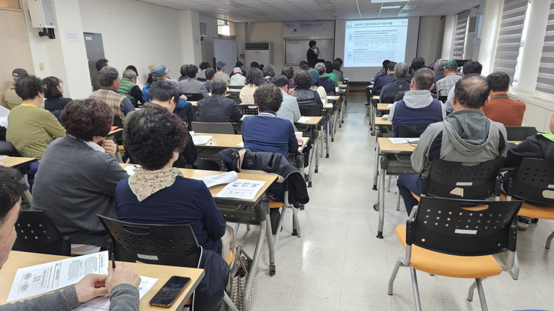 교육에 참여한 농업인들은 현장 관리 방안을 메모하고 궁금점에 대해 질문하는 등 강의 내용에 집중하며 높은 열의를 보였다.