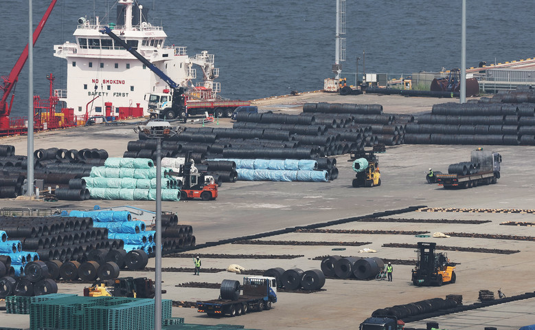 평택항에 쌓여 있는 철강 제품
