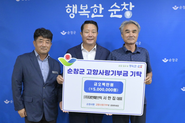 최영일 순창군수는“올해까지 벌써 3년째 변함없는 모습으로 고향에 대한 애정을 기부로 실천해 주신 서한집 대표께 진심으로 감사드린다”면서“고향발전을 응원하는 마음에 보답할 수 있도록 보내주신 기부금을 소중히 활용하겠다”고 화답했다.