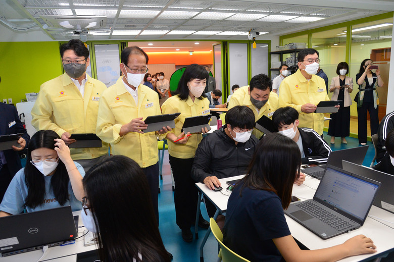앞서 시 교육청은 코로나 19 확산으로 인해 온라인 학습환경 구축의 필요성 증대와 디지털 대전환으로 인한 교육 패러다임의 변화로 인해 2021년 전 학교 일반교실 와이파이 구축과 더불어 전자칠판 설치, 스마트기기 보급 확대 등 현재까지 각각 108억원과 632여억원의 예산을 투입하여 미래교육에 대응하기 위한 디지털 교육 인프라를 조성하였다.