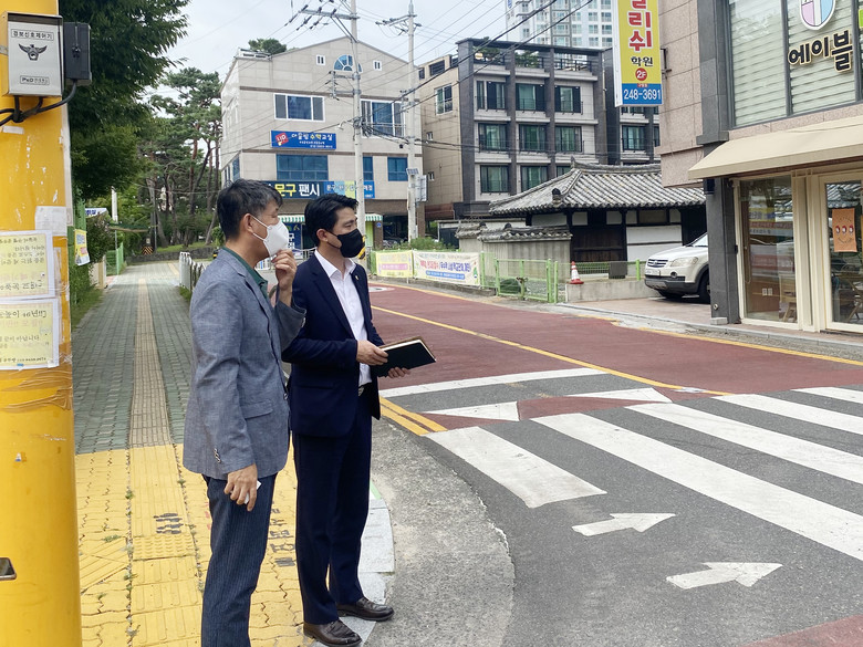 특히, 초등학교 반경 300m이내 설치되어 있는 어린이보호구역(스쿨존)의 정비ㆍ관리 실태를 집중적으로 살펴보고, 울산시 교통기획과 관계 공무원과 함께 호연초 및 천상초 인근의 보행안전 확보를 위한 개선방안을 논의했다.