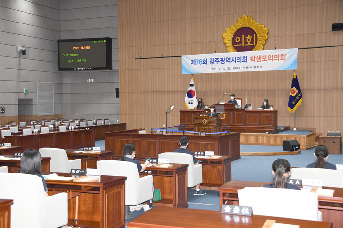 광주광역시의회는 학생 모의의회를 2005년부터 광주광역시교육청에서 학교를 추천받아 진행 중으로 지금까지 총 76회 8,100여명이 체험했고 11월 중에는 체험 우수 수기에 대해 시상할 예정이다.