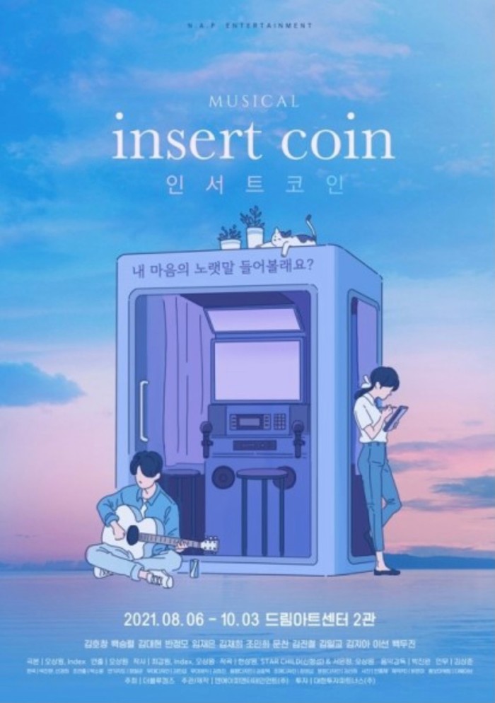 가슴을 흔드는 서정적이고 아름다운 음악으로 따스한 감동을 전해 줄 뮤지컬 <인서트 코인>은 8월 6일부터 10월 3일까지 드림아트센터 2관에서 공연되며, 7월 21일(수) 인터파크에서 프리뷰 티켓 오픈을 진행한다.