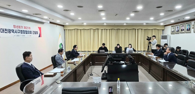 [서구 세계타임즈=이채봉 기자] 대전광역시 구청장협의회(회장 서철모 서구청장)는 15일 오전 서구청에서 제21차 간담회를 개최하고, 대전·충남 행정통합 추진 과정에서 자치구의 실질적인 권한을 보장하기 위한 핵심 안건들에 대해 전격 합의했다.