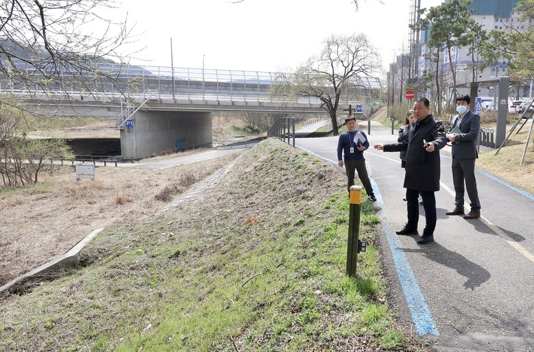 아파트 단지 주변은 방음벽 파손, 배수불량, 주변 건축현장 자재 무단적치, 갑천변 고인물로 인한 악취발생 등으로 안전사고가 우려되어 입주민이 큰 불편을 겪고 있는 곳으로 이번 합동점검으로 관련부서에서는 즉시 조치계획을 수립하고 실행할 것을 약속했다.