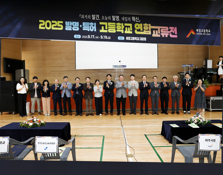 [파주시 세계타임즈=송민수 기자] 파주 세경고등학교(교장 장계홍)는 9월 17일부터 19일까지 3일간 ‘과거의 발견, 오늘의 발명, 내일의 혁신’을 주제로 2025 발명·특허 고등학교 연합교류전을 성공적으로 개최했다. 이번 행사는 특허청 주최, 한국발명진흥회와 세경고 주관으로 진행되었으며, 전국 발명.특허 고등학교 학생들의 창의력과 협력 능력을 높이는 뜻깊은 자리였다.