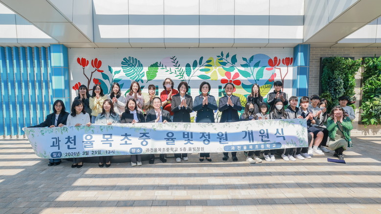 ‘율빛정원’은 과천시와 경기도교육청이 협력해 추진한 ‘율목초중 옥상휴게공간 조성사업’을 통해 조성된 공간이다. 이번 사업에는 과천시 예산 1억 4천만 원과 교육청 예산 1억 4천만 원 등 총 2억 8천만 원이 투입됐으며, 지난 2월 공사가 마무리됐다.
