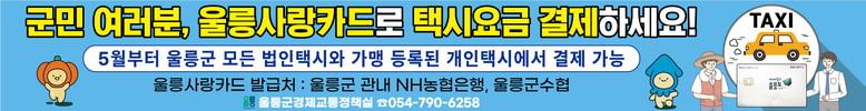 [울릉군 세계타임즈=한윤석 기자] 울릉군은 ‘5월 7일부터 울릉사랑카드를 이용한 택시요금 결제 시스템을 본격 운영한다.’고 밝혔다.