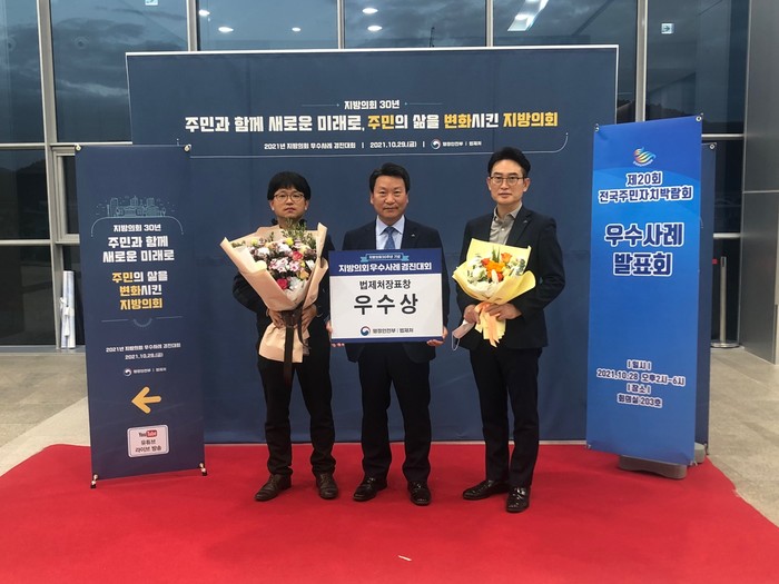 [세종=세계타임즈 이채봉 기자] 세종특별자치시의회(의장 이태환)는 29일 울산전시컨벤션센터에서 열린 지방의회 30주년 기념 지방의회 우수사례 경진대회 결선에서 우수상(법제처장 표창)을 수상하는 쾌거를 이뤘다.
