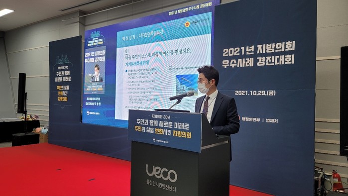 이번 지방의회 우수사례 경진대회에서는 1차와 2차 전문가 심사를 통과한 기초와 광역의회의 우수 사례 14건을 대상으로 결선 발표를 진행한 후 전문가심사단과 국민평가단으로 구성된 현장평가단의 점수를 합산해 최종 순위를 결정했다.
