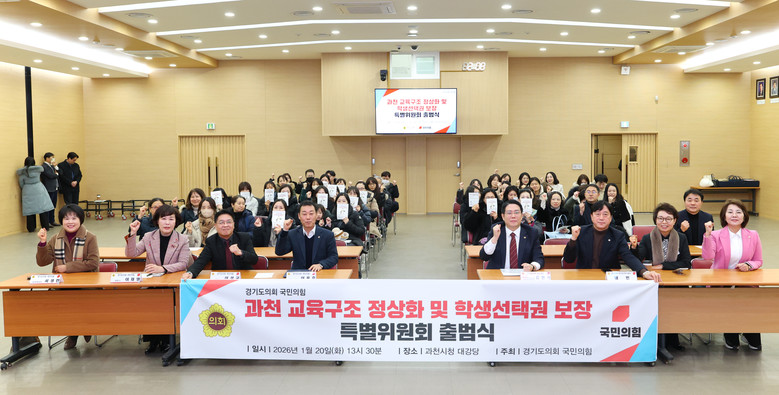 [경기도 세계타임즈=송민수 기자] 경기도의회 국민의힘은 20일 ‘과천 교육구조 정상화 및 학생선택권 보장 특별위원회’를 출범하고 특별위원장에 김현석(과천) 의원을 임명했다.