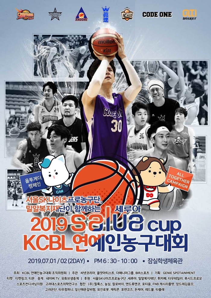 [세계타임즈 김인수기자] 2019 SALUA(세루아)CUP KCBL 연예인농구대회가 내달 1일부터 2일, 이틀간 서울 송파구에 위치한 SK나이츠의 홈경기장 잠실학생체육관에서 개최된다.