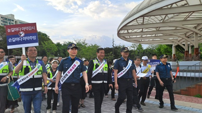 지난 10일 목동 파리공원에서 서울양천경찰서(서장 윤정근)와 양천청소년육성회(회장 조남준)가 합동으로 주최한 '청소년 마약 퇴치 거리 캠페인'에서 윤정근 서장은 "마약 범죄는 재범률이 높아 검거가 능사가 아니며 예방과 교육이 중요하다"고 강조했다.
