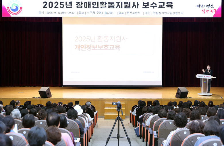 [서구 세계타임즈=이채봉 기자] 대전 서구(구청장 서철모)는 16일 구청 구봉산홀에서 한밭장애인자립생활센터 소속 활동지원사 400명을 대상으로 보수교육을 진행했다고 전했다.