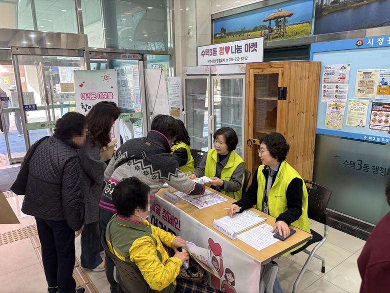 이번 캠페인은 수택3동지역사회보장협의체 위원들이 참여해 이웃에 관한 관심을 높이고 위기가구 발굴을 활성화하기 위해 마련됐다. 현장에서는 위기가구 지원사업, 1인 가구 고독사 예방 사업, 동 특화사업 등 다양한 복지서비스를 안내하고 홍보 물품을 배부하며 주민들의 제보 참여를 적극 독려했다.