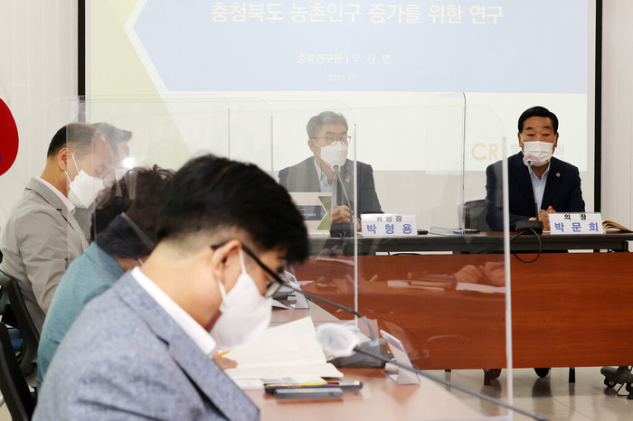 [충북=세계타임즈 이현진 기자] 충청북도의회 ‘충북 농촌인구 증가대책 연구모임’(대표의원 박형용)은 19일 “출산, 고령화 시대에 농촌인구 증가를 위한 방안“에 대해 연구용역기관인 충북연구원과 토론을 가졌다.