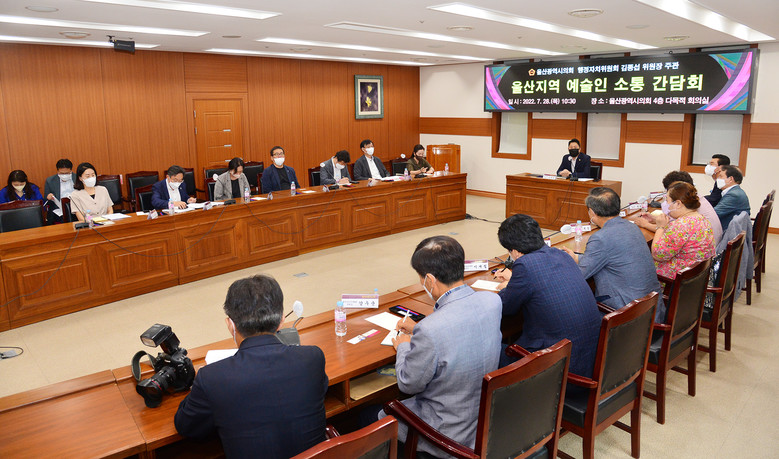 김종섭 위원장은 “코로나19 장기화로 울산의 지역 예술인들이 전시·공연 기회를 갖지 못해 경제적 어려움을 겪고 있다”며 “최근 코로나19 재유행에 지역 문화예술계가 또다시 위축 조짐이 있어 지역 문화예술인과 문화도시 울산을 만들기 위해 문화예술 발전방안을 함께 고민하고자 한다”며 간담회 개최 이유를 밝혔다.