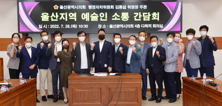 김종섭 위원장은 “문화도시 울산의 주역이신 지역 예술인들과의 소통으로 많은 영감을 얻었다”며 “앞으로 의회 차원에서 지역 문화예술인이 지금보다 더 나은 환경에서 문화예술 활동에 전념할 수 있도록 지속적으로 노력하겠다”라고 약속했다.