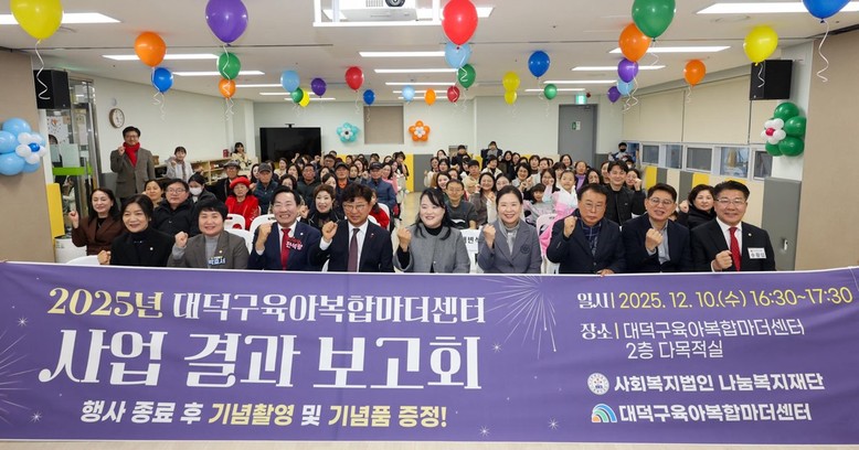 최충규 대덕구청장은 “대덕구육아복합마더센터를 믿고 이용해 주신 많은 가족분께 감사드린다”며 “앞으로도 센터가 부모와 아이의 일상을 지지하는 공간으로 자리 잡을 수 있도록 지속 지원하겠다”고 말했다.
