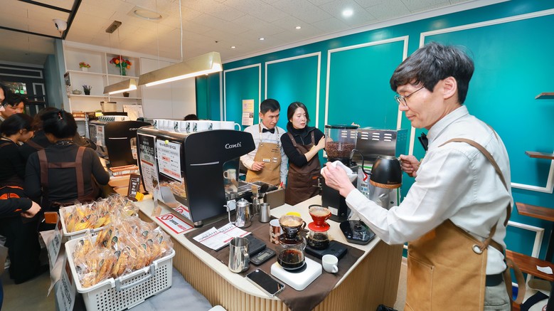 이번 행사는 복지관 ‘바리스타 2급 자격증반’을 통해 자격을 취득한 신중년 남성 바리스타들이 직접 커피를 내리고 행사 운영에 참여해 의미를 더했다. 수강생들은 교육과정에서 익힌 실력을 바탕으로 주민들에게 커피를 제공하며 지역사회 나눔 활동에 동참했다.