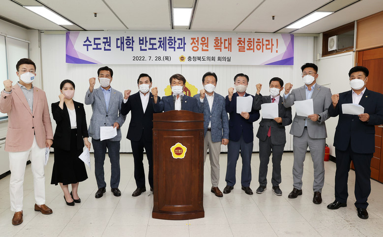 [충북 세계타임즈=이현진 기자] 충북도의회(의장 황영호)는 7월 28일 의회 회의실에서 수도권 대학의 반도체학과 정원 확대를 반대하는 성명서를 냈다.