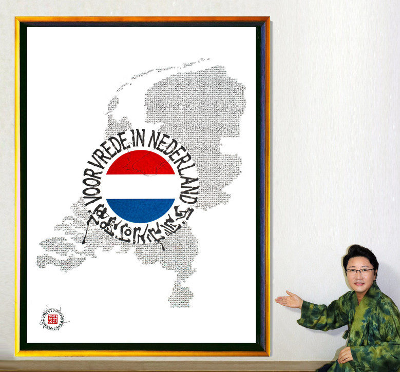 [세계타임즈]최성룡기자 =유엔(UN) 세계평화지도 시리즈 작가로 국제적인 관심을 받고 있는 한한국 세계평화작가가 제579돌 한글날을 앞두고, 한글서예 ‘네덜란드 평화지도’(Netherlands Peace Map) 작품을 6일 세계평화사랑연맹(김포)에서 발표해 또 한 번 세계인에게 평화의 메시지를 전했다.