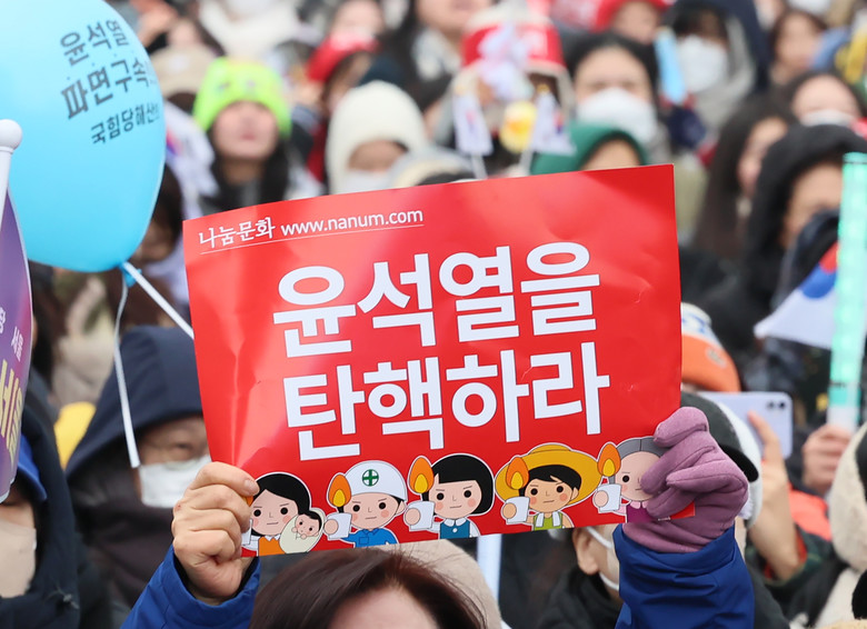 [세계타임즈 = 이장성 기자] 21일 서울 종로구 경복궁 동십자각 인근에서 '윤석열즉각퇴진·사회대개혁 비상행동' 주최로 열린 범시민 대행진에서 참가자들이 구호를 외치고 있다. 2024.12.21