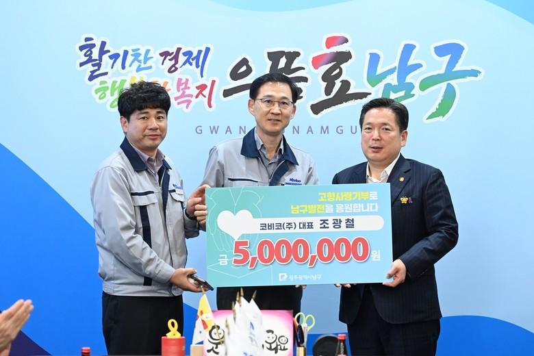 [세계타임즈=남구 손권일 기자] 광주시 남구는 8일 구청 열린민원실에서 남구 발전을 위한 고향사랑기부금 전달식을 가졌다.
