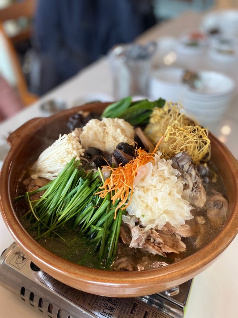 그리고 압력솥에 오리,대추, 인삼, 녹각, 감초, 마늘을 넣어 1시간 정도 끓인다.이 집의 메인요리 ‘약선 또 오리’능이백숙‘은 잡내가 하나도 없고 야들 보들보들한 고기가 식감이 좋아 어르신이나 어린이들도 좋아한다.