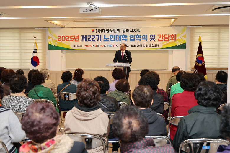 [동해시 세계타임즈=김민석 기자] 올해 22기를 맞이한 (사)대한노인회 동해시지회(지회장 최종수) 부설 노인대학은 지난 3월 27일 대한노인회 동해시지회 노인대학 강의실에서 2025년도 제22기 노인대학 입학식을 개최했다.