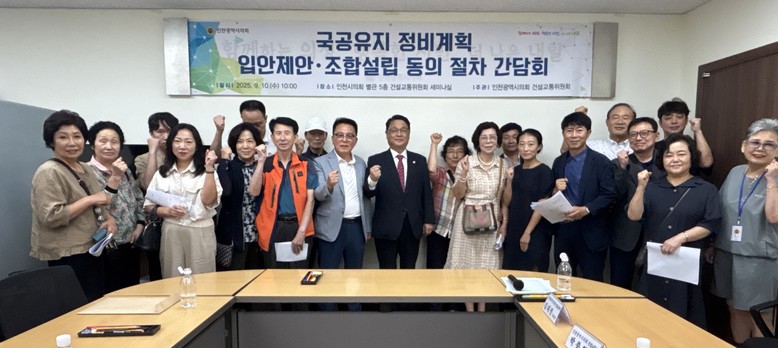 [인천 세계타임즈=심하린 기자] 인천광역시의회 건설교통위원회 김대중 위원장은 10일 시의회 건교위 세미나실에서 ‘국·공유지 정비계획 입안 제안 및 조합설립 절차’를 주제로 간담회를 개최하고, 부평동측구역 주민들의 목소리를 경청했다.