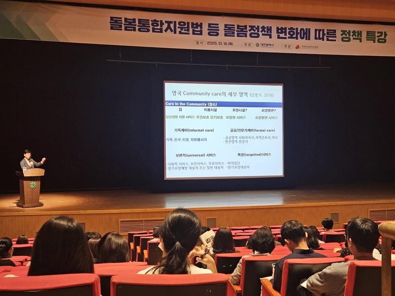대전시는 지난 6월 자치구 및 동 담당자를 대상으로 관련 교육을 실시한데 이어, 이번 특강을 통해 현장 중심의 돌봄 정책 변화와 실행 방안을 고민하는 시간을 가졌다.
