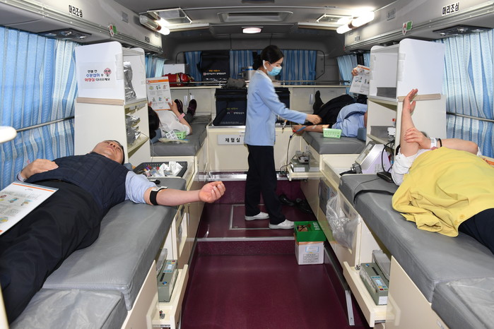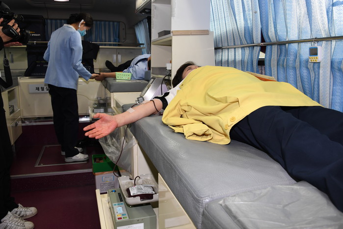 이날 헌혈 행사는 보건복지부 안전채혈 매뉴얼에 따라 채혈자의 여행력 확인, 체온 측정, 손 소독 등에 철저를 기하고 헌혈버스의 상시 소독과 환기 등 감염 안전에 만전을 기하는 가운데 이뤄졌다.