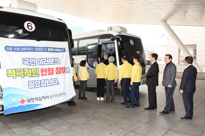 김동찬 의장을 비롯한 광주시의회 의원과 사무처 직원들은 최근 국내에 유입된 코로나19 감염증 여파에 따른 지역 내 혈액수급 악화를 해소하기 위해 추진되는 헌혈문화 확산 운동에 동참하고자 지난 13일 단체 헌혈에 나섰다.
