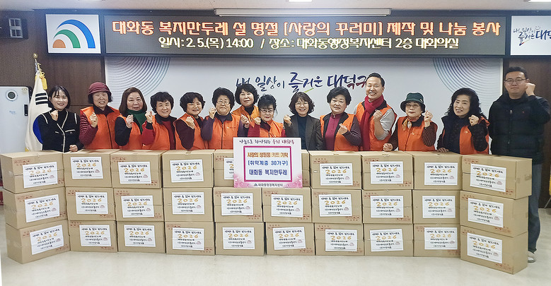 조영희 대화동 복지만두레 회장은 “설날을 맞아 작은 정성이지만 이웃들에게 보탬이 되길 바라는 마음으로 준비했다”며 “앞으로도 복지 사각지대 해소를 위해 지속적으로 노력하겠다”고 말했다.