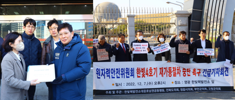 이후 이루어진 기자회견은 고창군의회를 비롯한 전북도의회, 부안군의회, 정읍시의회, ‘한빛핵발전소대응호남권공동행동’이 공동으로 주관하여 실시되었으며 이들 모두 한목소리로 “원자력안전위원회가 막대한 책무를 엄중히 받아들이고, 안전성이 제대로 검증되지 않는 위험천만한 한빛4호기 재가동 승인 절차를 즉각 중단할 것”을 촉구하였다.