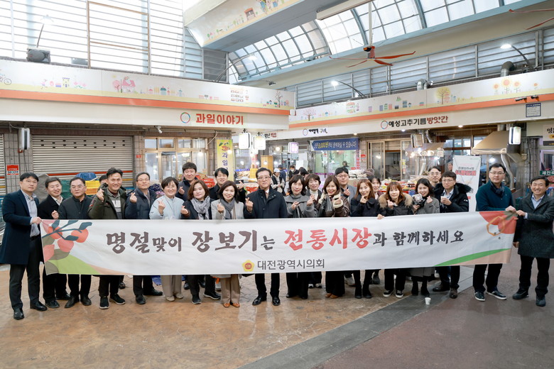조원휘 의장을 비롯한 이금선 교육위원장과 대전시의회 사무처 직원들은 송강전통시장 곳곳을 둘러보며 농축수산물과 제수용품을 구입하고 전통시장 이용을 장려하는 캠페인도 진행했다.