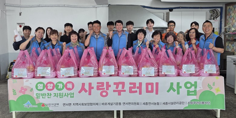 사랑꾸러미 사업은 세종사회복지공동모금회의 지원과 산장가든‧카페 오뜨몽드‧칠보농원‧세종연서농협의 후원을 받아 매월 1회 진행되는 사업이다.