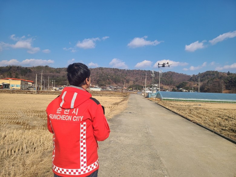 | ▲ 순천시 산불드론감시단이 드론을 활용해 산불 예방 예찰 활동을 벌이고 있다 |
