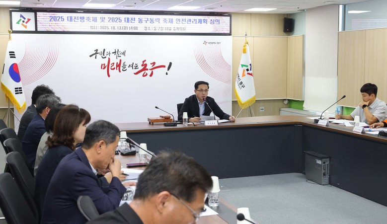 [동구 세계타임즈=이채봉 기자] 대전 동구(구청장 박희조)는 13일 구청 10층 중회의실에서 ‘2025 대전 동구동락 축제’와 ‘2025 대전 빵축제’의 안전관리계획을 심의하기 위해 ‘동구 안전관리위원회 회의’를 개최했다고 밝혔다.