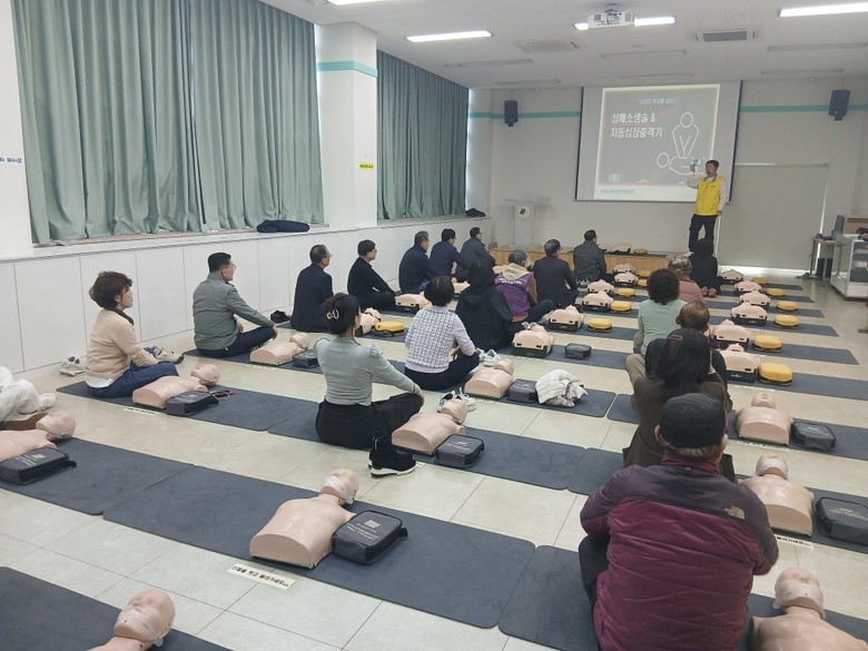 지역 주민 및 관내 사회단체 회원 약 26명은 ▲심폐소생술(CPR) 실습 ▲자동심장충격기(AED) 사용법 ▲화재 발생 시 탈출을 위한 완강기 사용법 ▲지진·연기 대피, 화재 진압 모의 훈련 등을 통해 응급상황 대응 역량을 키웠다.