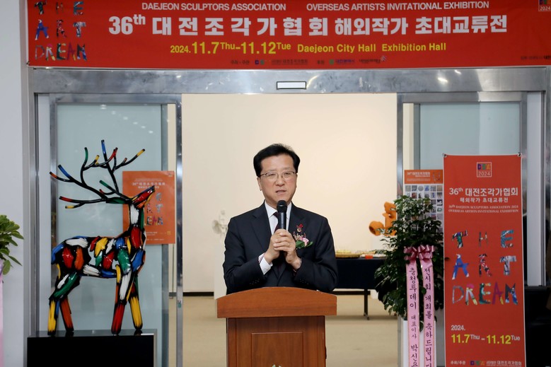 [대전 세계타임즈=이채봉 기자] 대전시의회 조원휘 의장은 7일 ‘제36회 대전조각가협회 해외작가 초대교류展’ 개막식이 열린 시청 1층 전시실을 찾아 “국내외 작가들의 철학과 열정이 녹아 있는 예술작품이 새로운 영감과 깊은 감동을 선사할 것”이라며 행사 개최를 축하하고, “교류전을 발판 삼아 한국 조각의 세계화가 더욱 가속화되기를 기원한다”고 말했다.