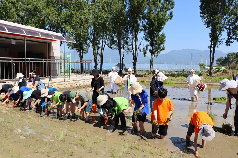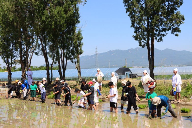 이에 따라 학생들은 지난 4월부터 무형유산 정영을 전수자의 지도 아래 ‘용전들 노래’를 배웠다. 또 모판 만들기, 볍씨 싹 틔우기, 모 기르기 등 모내기에 이르는 과정을 체험했다.