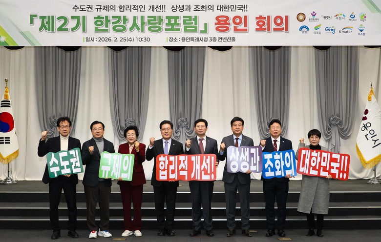 - 수도권 규제 합리적 개선 방안 논의…3월 중 토론회·공동 기자회견 추진키로 뜻 모아 - [세계타임즈=용인시 송민수 기자] 용인특례시(시장 이상일)는 25일 시청 컨벤션홀에서 ‘제2기 한강사랑포럼’을 개최하고, 한강유역 수도권 규제의 합리적 개선과 지역 간 상생 협력 방안을 논의했다고 밝혔다.