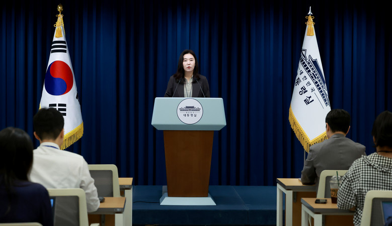 강유정 대통령실 대변인이 9일 서울 용산 대통령실 청사에서 산재 관련 대통령 지시사항 등에 대한 브리핑을 하고 있다. 2025.8.9