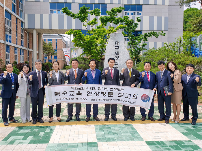[대구=세계타임즈 한성국 기자] 대구광역시의회 교육위원회(위원장 박우근)는 4월 30일(화) 오전 공립특수학교인 대구세명학교(달서구 새방로 소재)를 방문하고, 이어 오후에는 대구2.28기념학생도서관(동구 아양로 소재) 개관식에 참석하였다.